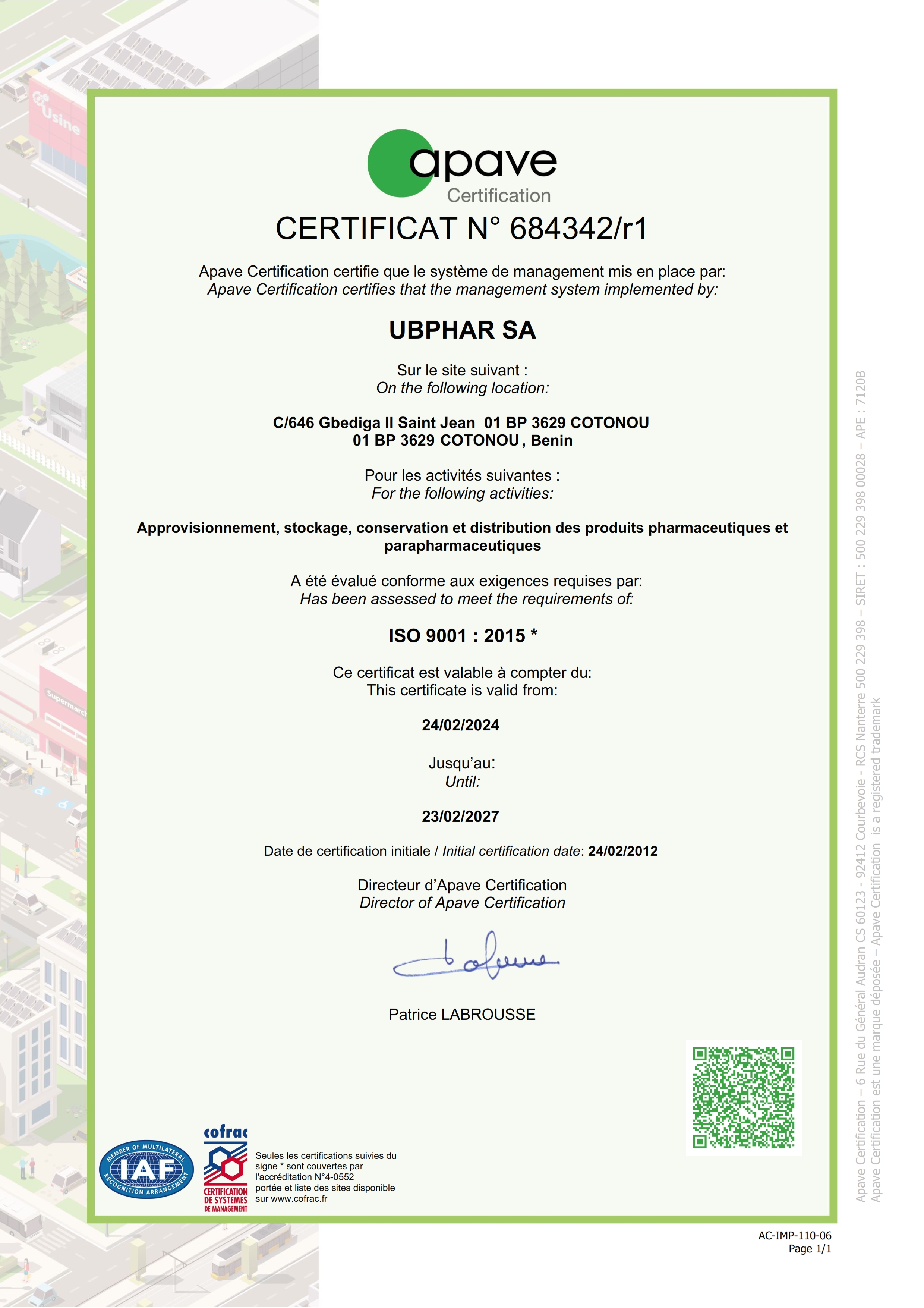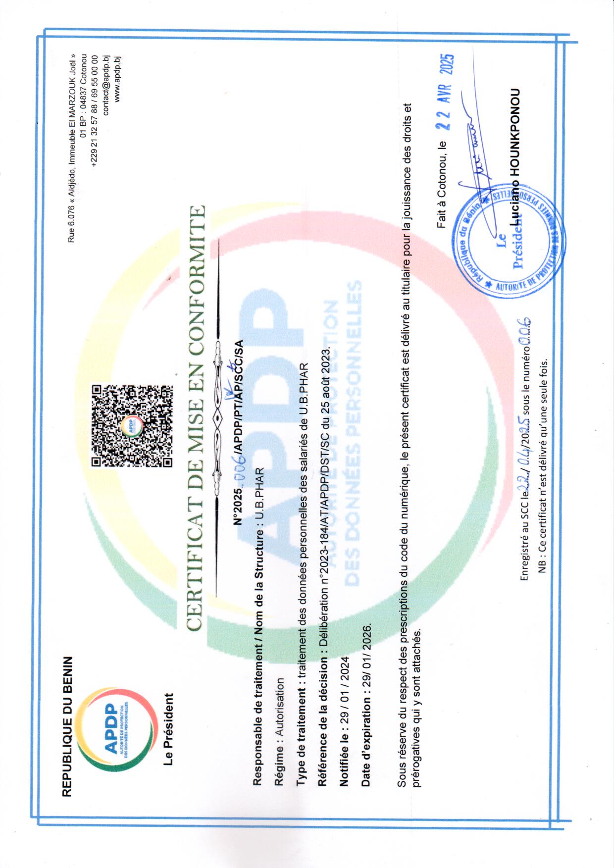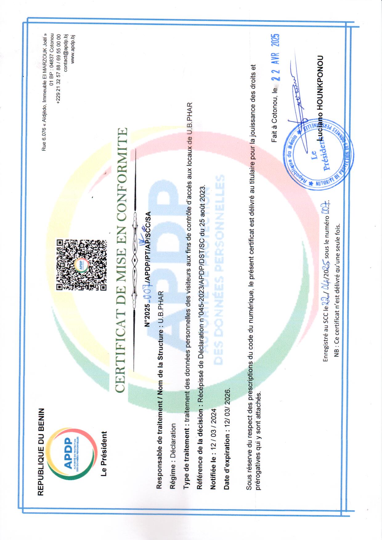 Traitements des données personnelles des visiteurs aux fins de contrôle d'accès aux locaux de U.B.PHAR