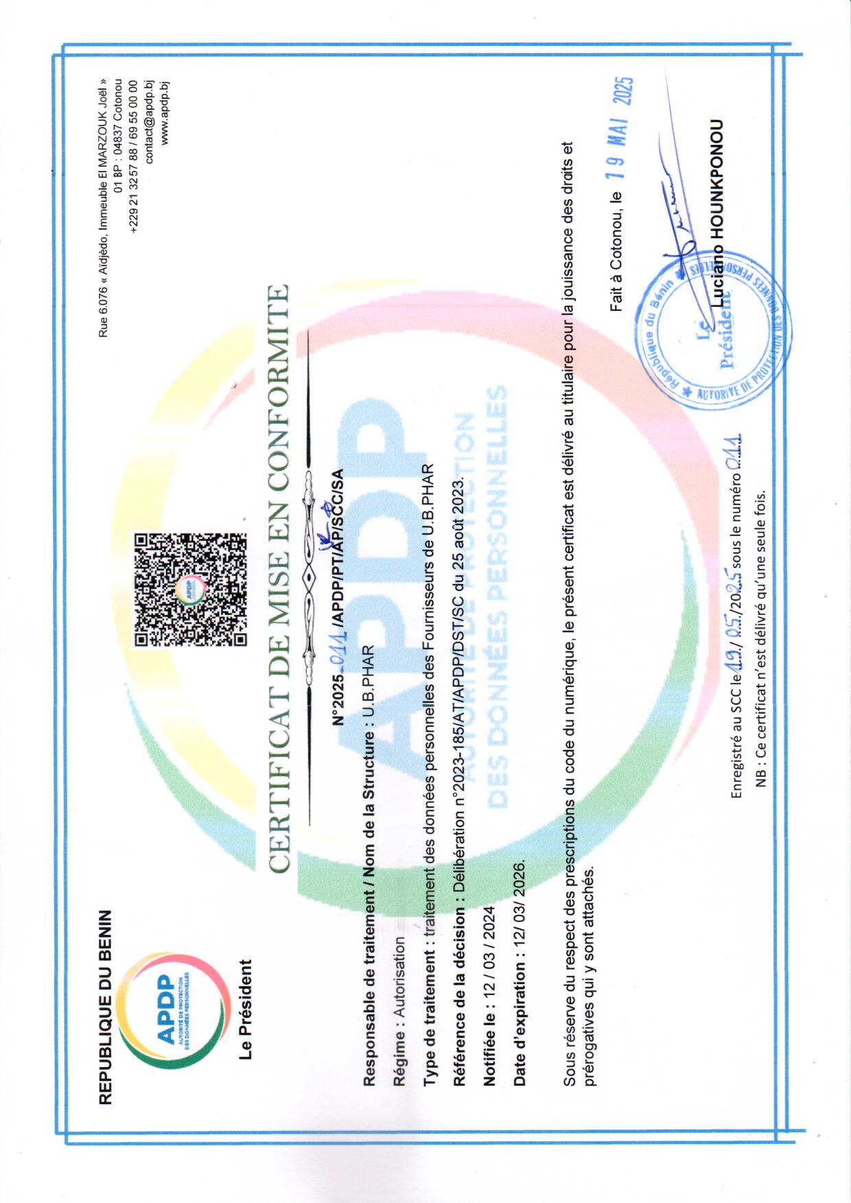 Traitements des données personnelles des fournisseurs de U.B.PHAR